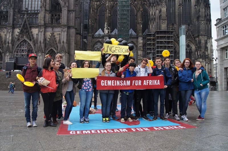 In a 2014 action, school students hit the streets to highlight the stark comparison between life in Europe and poor families in African countries.