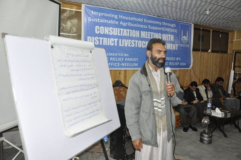 Islamic Relief hosted planning meetings and consultations in Neelum and Bagh to collect a variety of responses about life of farmers in the region. The meetings were attended by various officials, including the director generals of both agriculture and livestock, and professors from AJK University. The conferences were therefore an opportunity to open dialogue between farmers and government officials and find a way forward for everybody.