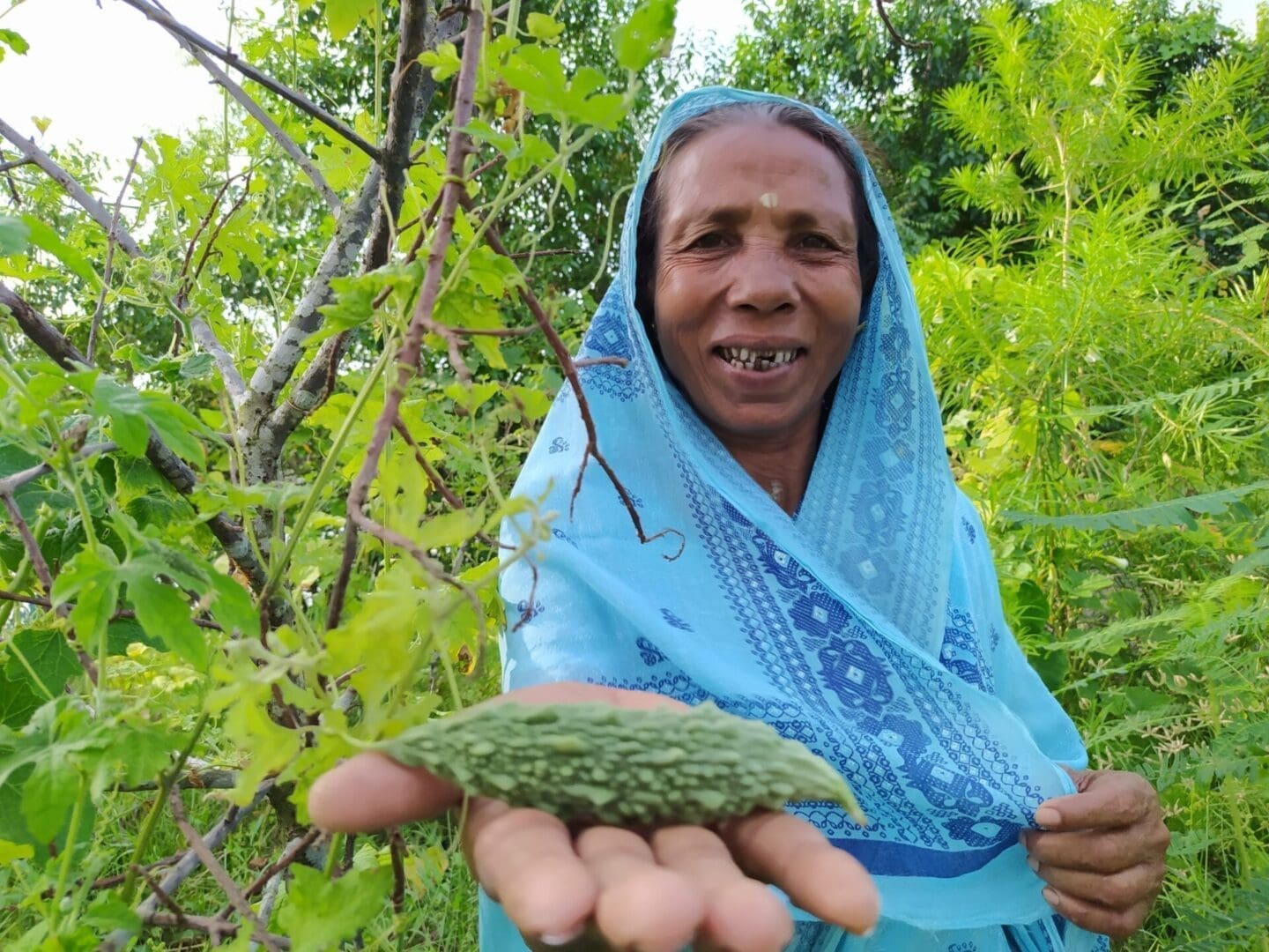 Today Geeta has three goats, two ducks, some chickens and is growing more vegetables than she needs so is able to sell them for a profit. Her life has also been made easier thanks to the water tank Islamic Relief provided, allowing her to store 1,000 litres of rainwater instead of walking miles each day to fetch water.