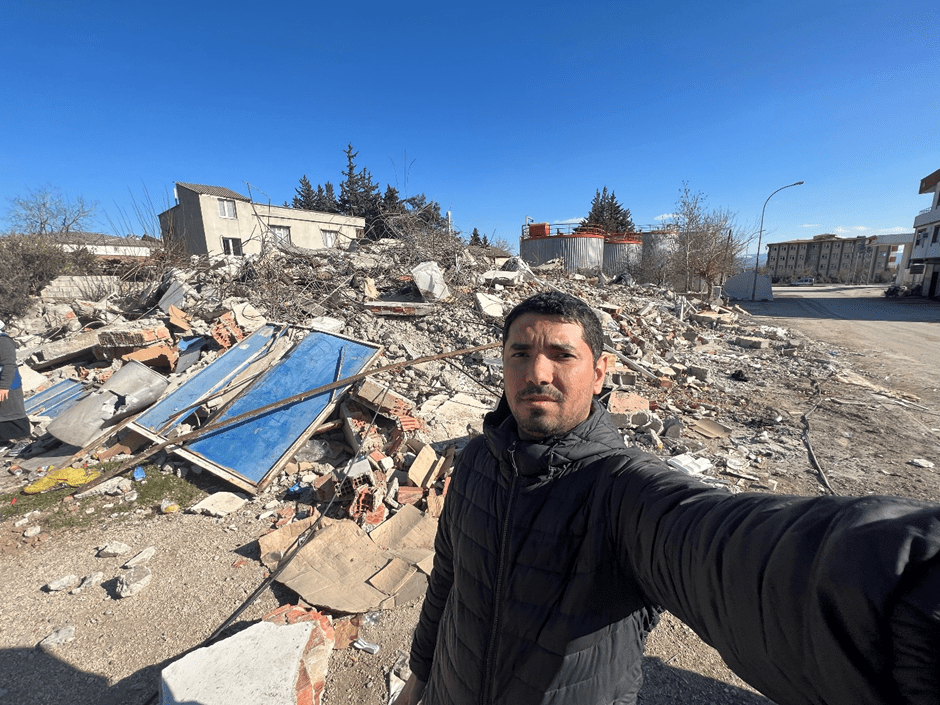 Majdi capturing the devastating impact of the Turkey earthquake in 2024.