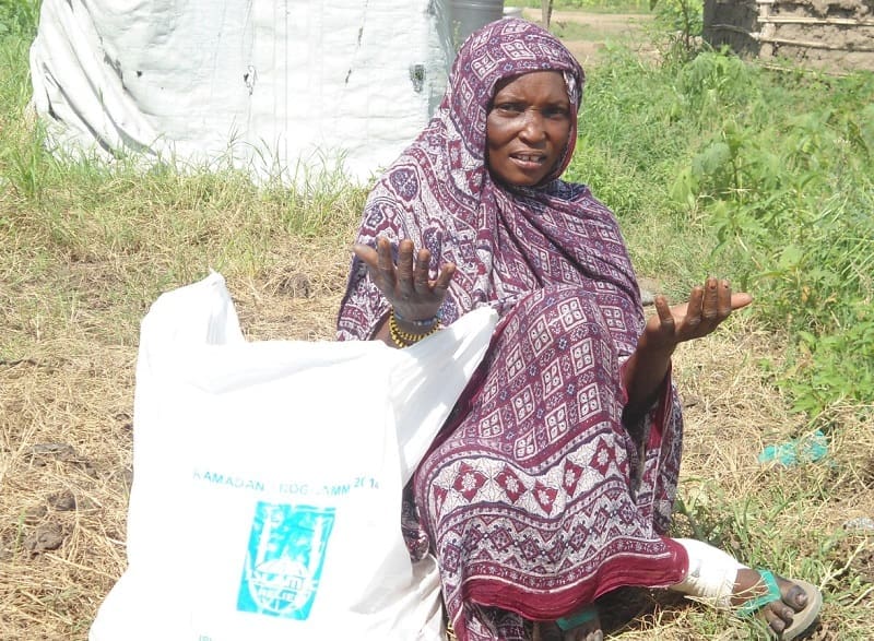 Habiba has benefitted from a number of Islamic Relief projects delivered in her area. She also received Qurbani meat in 2014, uses a borehole drilled by Islamic Relief, and has been given essential items such as cooking sets, soap, and bedding.