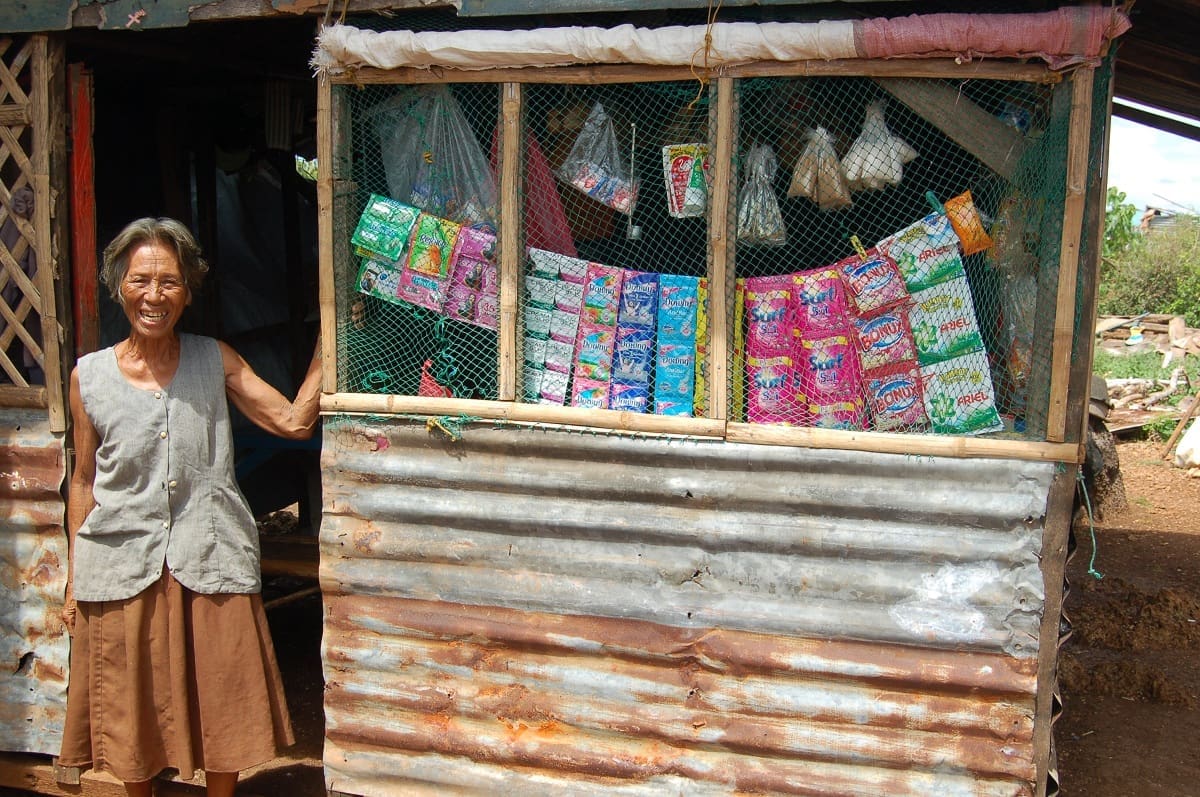 Julia was given 12,700 Philippine pesos (about £180), which helped her get her business back on its feet. She now sells rice, soap, canned goods, sugar, cooking oil, bread, and biscuits. Her business means better access to goods for her neighbours, and she is even able to offer short-term credit if people are struggling to pay straight away.