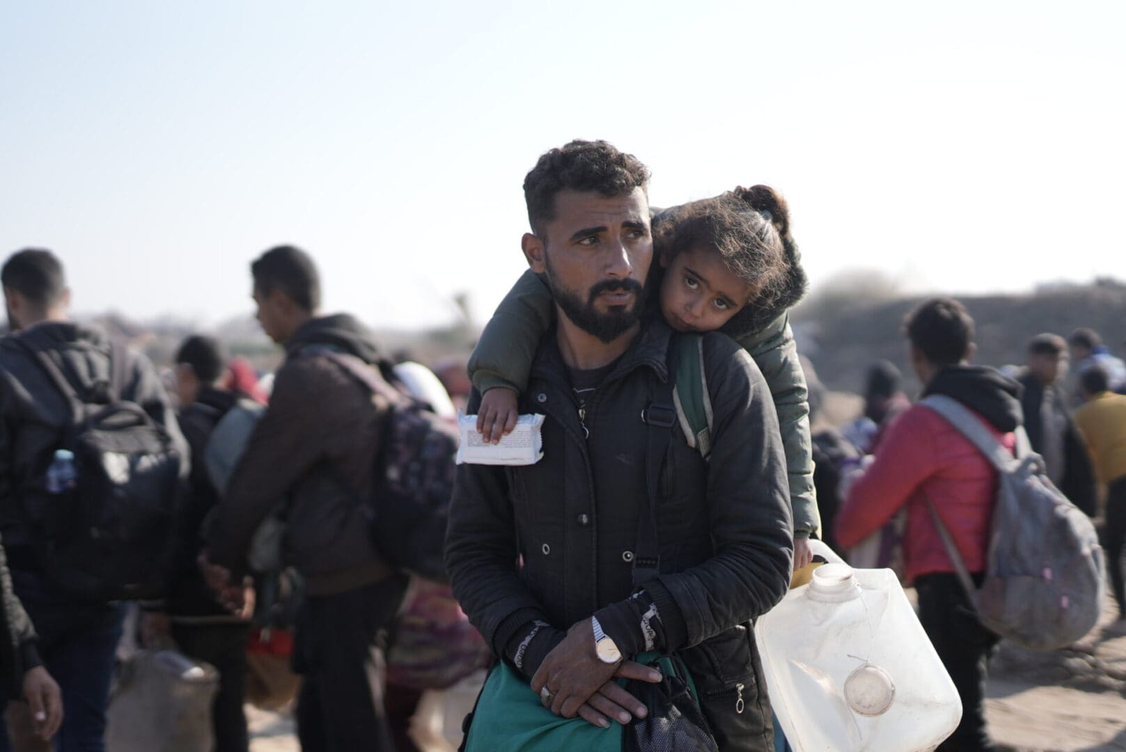 “We were walking among hundreds of thousands of people. Among us were children, women, older people, and people with disabilities. Walking was very, very slow due to the overcrowding. [It] took us 3 hours of walking, but we didn’t care, we only looked forward to security, safety, stability and a return home to a good life. We arrived… thank Allah, [and] met our work colleagues with longing after a separation of more than 15 months,” says Tarek, who had an emotional reunion with other Islamic Relief aid workers who he invited to accompany him as he continued homeward.