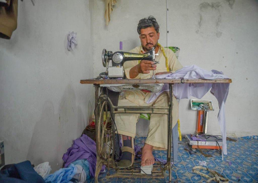 “Life is all about hope and pursuing dreams,” says Muhammad, as he skilfully stitches a shirt on a sewing machine. His prosthetic leg rests beside his wooden worktable, which emits an earthy scent.