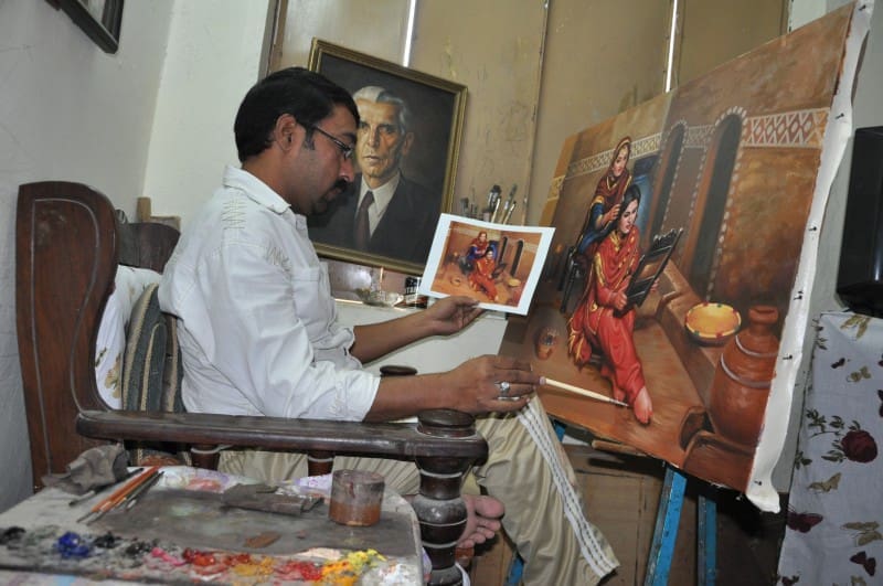 After paying back his original loan, Sajjad received another, which he also paid back. “Now I have my own studio at home, where I put my ideas on canvas and sell my work at competitive rates. I am inspired by my surrounding and convey the local culture on canvas, which reflects Pakistan’s architectural beauty, depicts its values and its scenic beauty. I also love calligraphy and exhibited my work capturing Quranic impressions.”