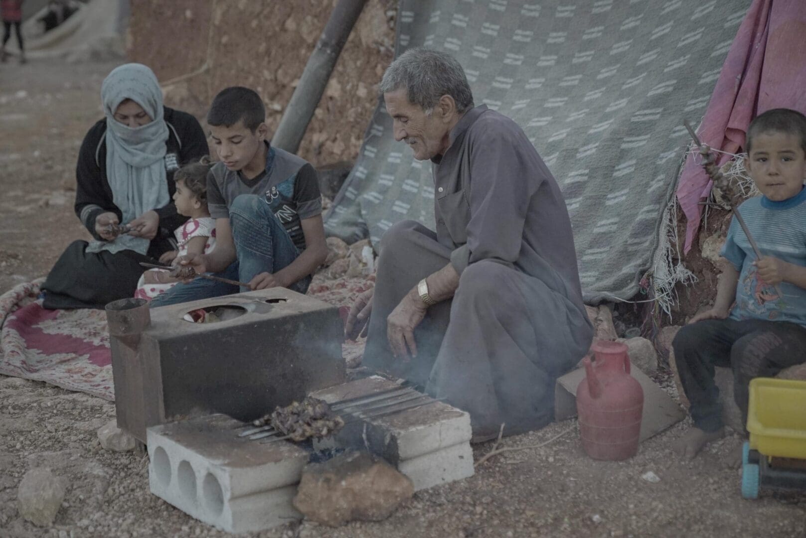 Abu Fawaz used to have a business growing and selling fruit. Now he and his wife, their son and daughter and orphaned grandson live together in a small room made of mud in a camp in Idlib. The children have no access to education. The health situation in their camp remains precarious.