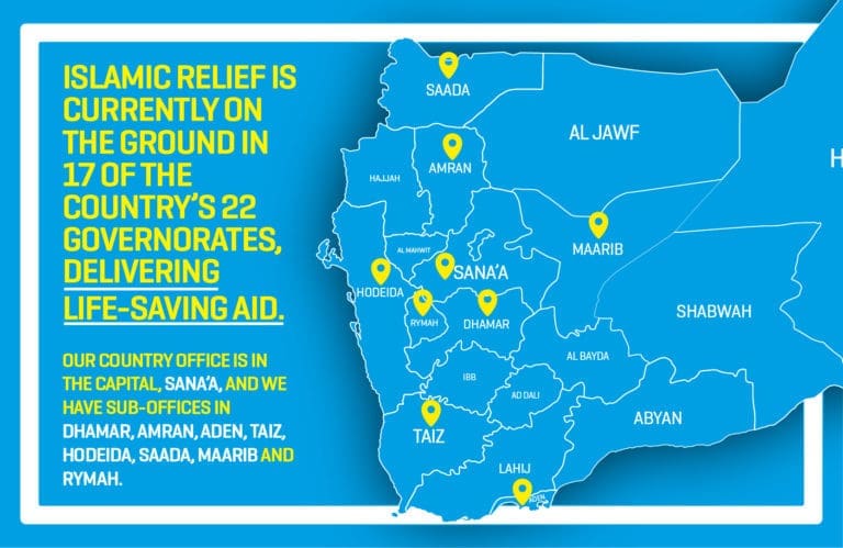 Islamic Relief works in 17 of Yemen’s 22 governorates and is the World Food Programme’s largest NGO partner in Yemen, delivering food aid to more than 2 million people every month. It also runs more than 150 nutrition and feeding centres, and provides support to hospitals and clinics.
