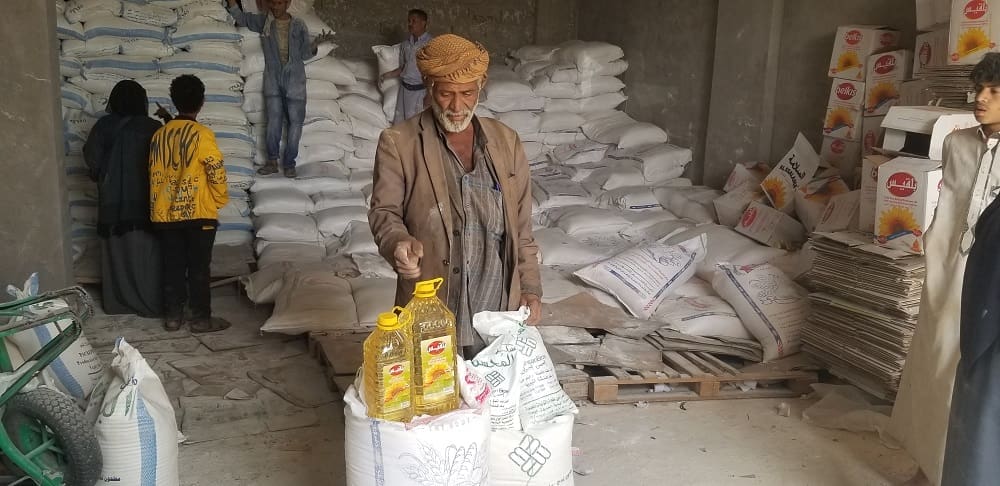 Distributing food assistance to vulnerable families in Taiz.