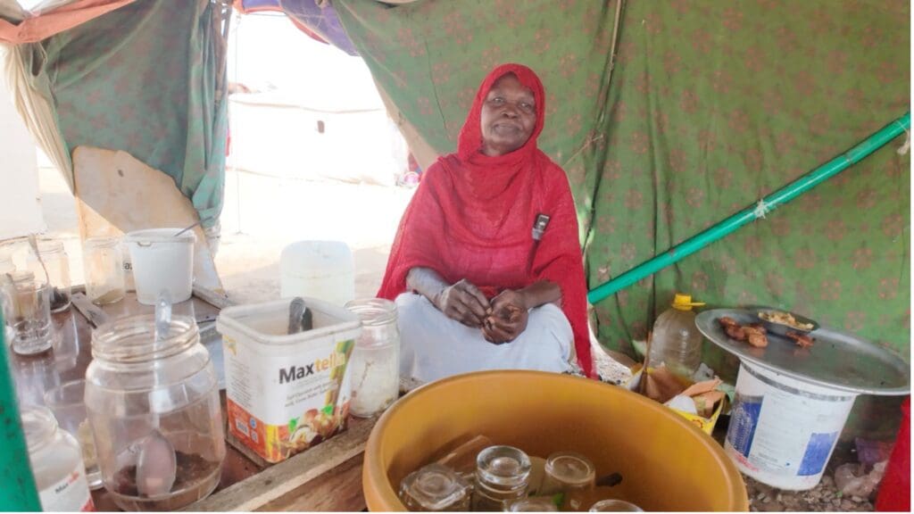 In Gedaref’s internally displaced persons camps, Khatmala runs a ‘takaaya’ – a community kitchen – where she provides and shares food and drink, that have become lifelines for those who have lost everything.